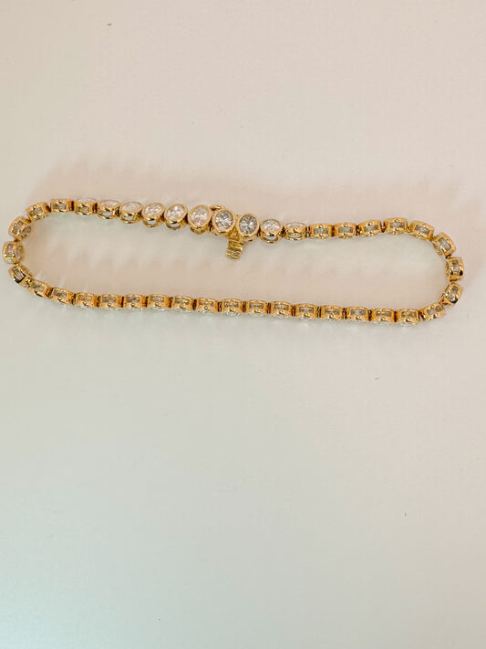 14k, Yellow gold 7.00 carat, lab grown diamond tennis bracelet. VS1/VS2 E-F