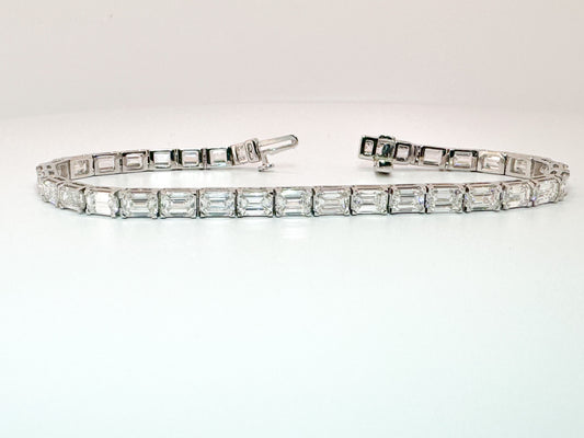 14k, white gold, 11.75 carat total weight, emerald cut, lab grown diamond tennis bracelet. VS1 E-F