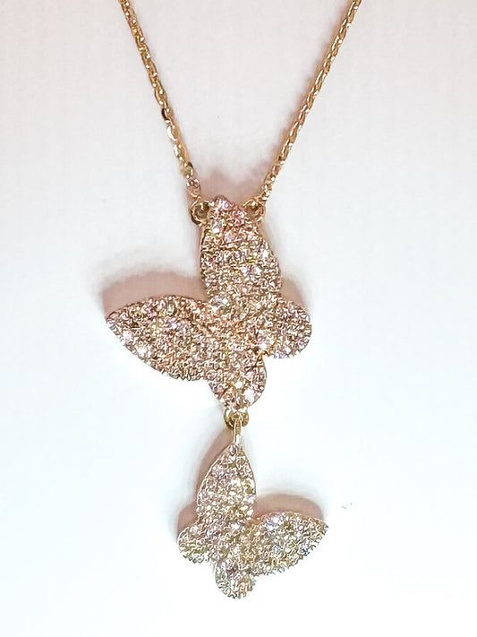 14K, Yellow gold, .78 diamond total weight, double butterfly necklace.