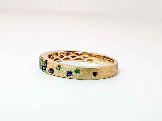 14K, Yellow gold, sapphire and tsavorite garnet fashion band. .37 carat total weight.