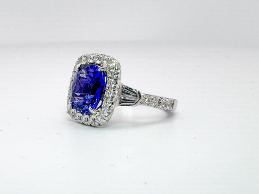3.10 carat Natural Tanzanite set in Platinum with .84 carats of natural diamonds