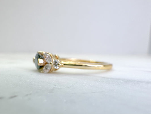 14k, yellow gold blue green tourmaline and diamond fashion ring.