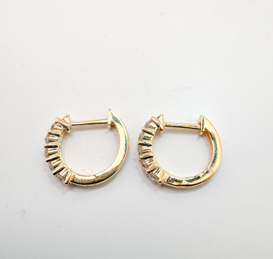 14k, Yellow gold, 1.00 dtw huggie hoop earrings.