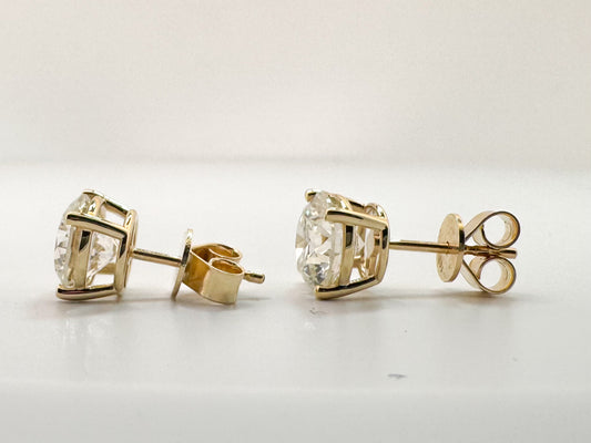 14K, Yellow gold, 4.00 carat total weight, lab grown diamond stud earrings.