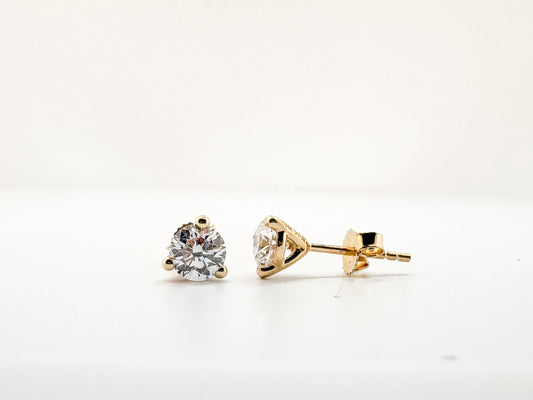 14K, Yellow gold, 1.00 ctw lab grown diamond stud earrings.