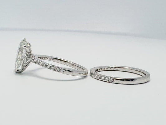 14KW Lab grown 2.57 Pear shaped center with Lab grown .54 side diamonds wedding set