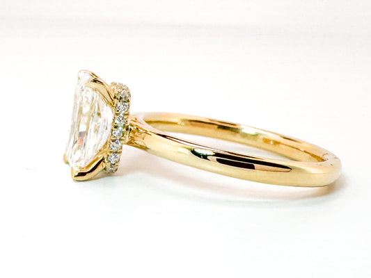 14K, Elongated 2.00 carat, VS2 F ,radiant cut, lab grown engagement ring. IGI Certified.