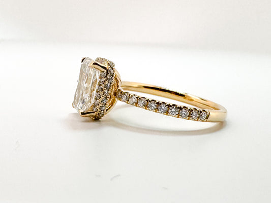 14K, yellow gold, 2.07 carat radiant cut lab grown diamond, set with .39 carats of side diamonds. IGI certified