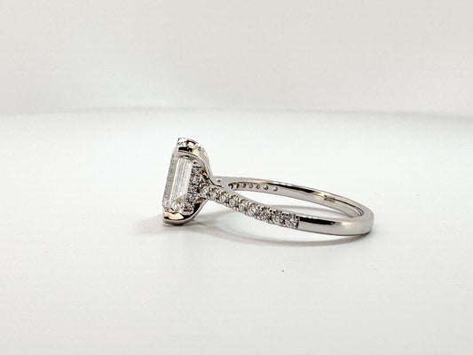 14K, White gold, 2.56 ct lab grown emerald cut set with .30 side diamond IGI certified