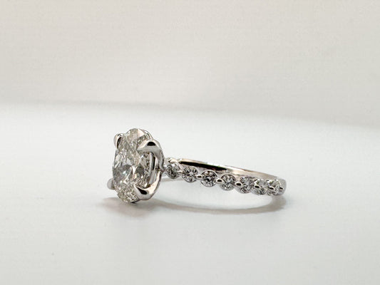 14K, White gold 2.08 VS2 E Lab grown oval set with .44 carats of side diamonds IGI certified