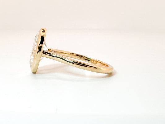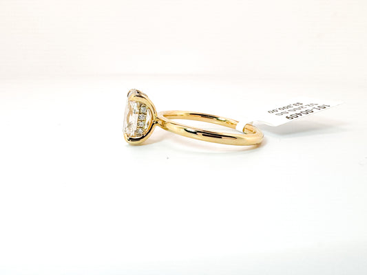 14K, Yellow gold, 2.04 carat, lab grown oval engagement ring. VVS2 F IGI Certified