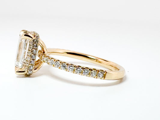 14K, Yellow gold, 2.07 Emerald cut enter set with .40 side diamonds. VS2, F. IGI certified