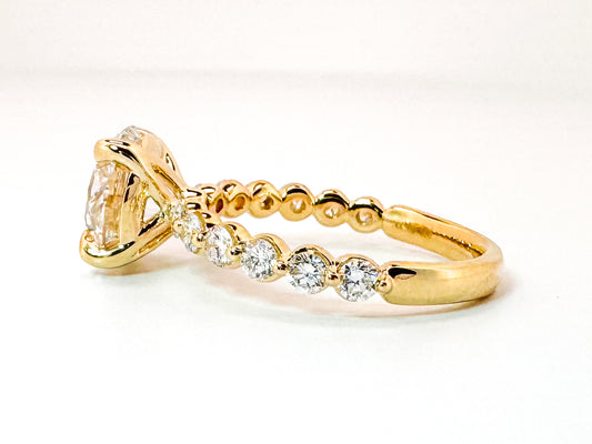 14K, Yellow gold, 2.04 carat, Lab grown oval diamond, set with .35 carats of side diamonds. IGI Certified