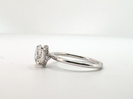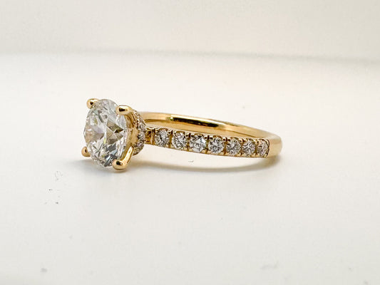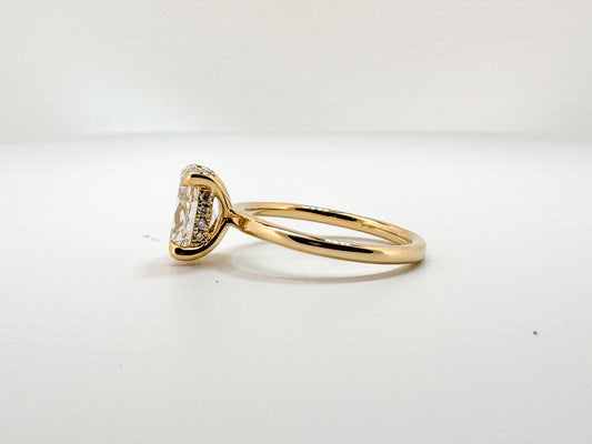 14k, Yellow gold 1.93 carat oval set with .07 dtw hidden halo.