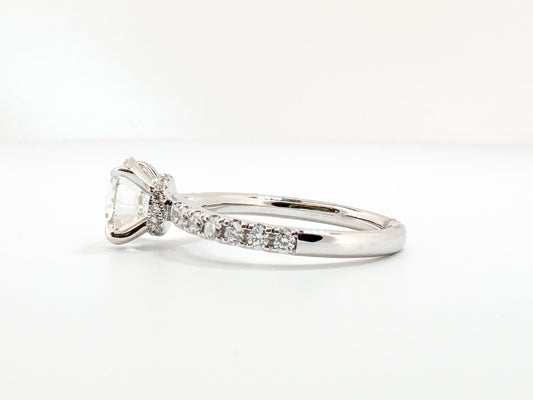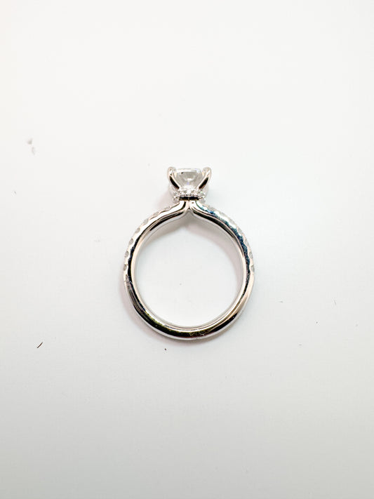 14K, White gold, 2.00 carat center stone lab grown with a hidden halo.