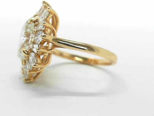 14K, Yellow gold, 2.01 lab grown round brilliant VS1 F, set with .49 side diamonds. IGI certified