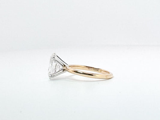 14K, 2.54 carat lab grown oval solitaire. VVS2 F IGI certified