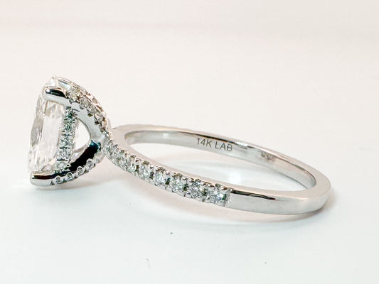 14K, White gold, 2.30 carat total weight lab grown engagment ring. IGI certified