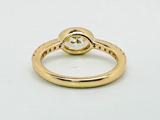 14KY 1.53 VVS2 Fancy yellow oval lab grown set with .31 carats of side diamonds