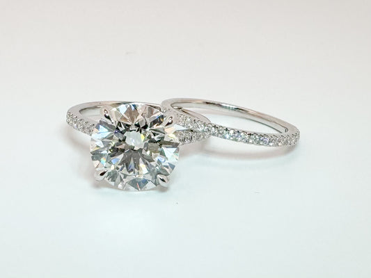 14k, white gold, 5.50 carat total weight lab diamond wedding set with hidden halo. VVS2 G IGI certified
