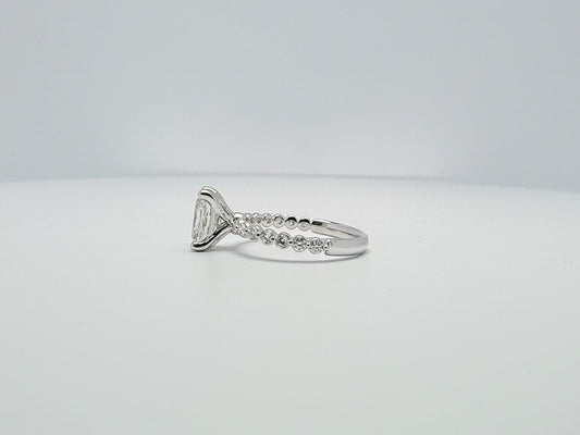 14K white gold, Lab grown 1.52 radient cut set with .38 side diamonds IGI certified