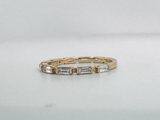 14k, Yellow gold, .60 natural diamond total weight. Baguette diamond band.