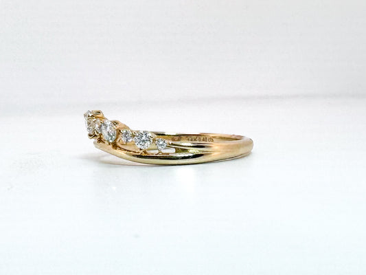 14k, yellow gold.40 diamond total weight, curved wedding band.