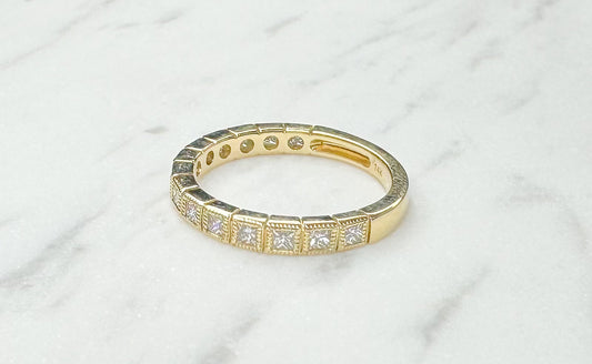 14k, yellow gold scalloped .21 carat, natural diamond band.