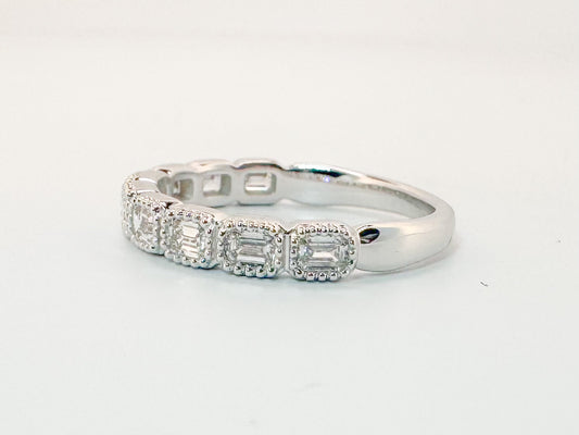 14K, White gold .75 carat. East/West, emerald cut natural diamonds VS G