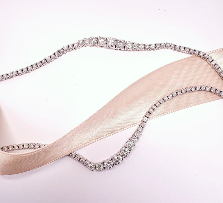 14K, white gold graduated lab grown riviera, diamond necklace. 7.30 carat total weight.