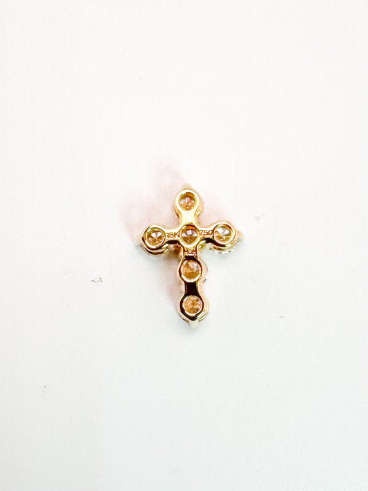 18k,Yellow gold, mini natural diamond cross. .40 carat total weight.