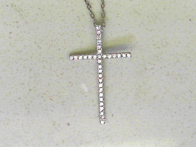 .23 ctw diamonds set in a thin diamond cross. The cross is 1" long
