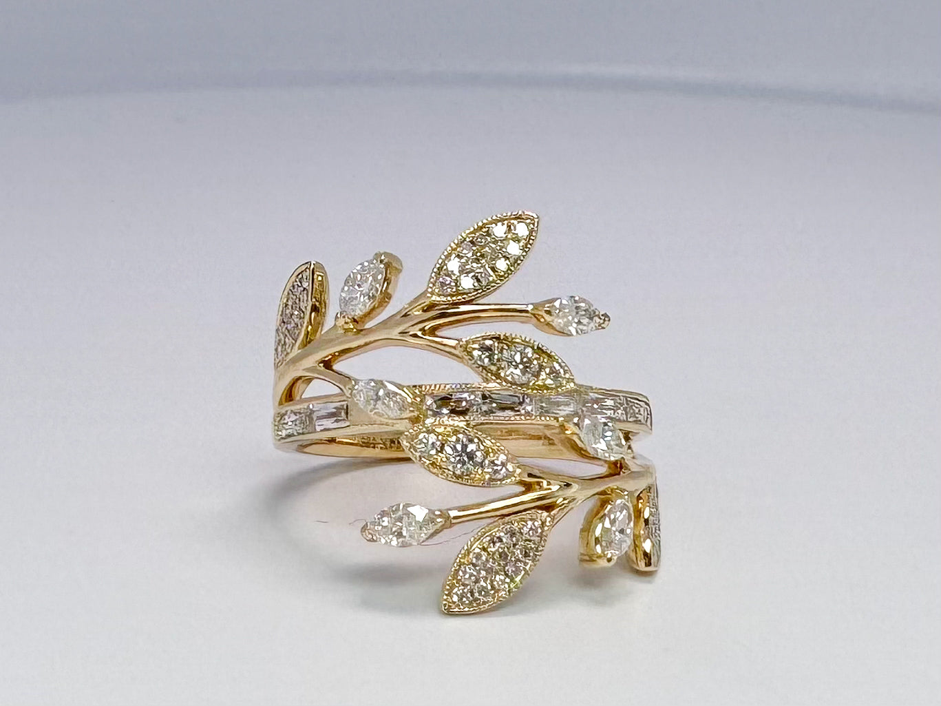 14k, yellow gold custom diamond ring. This ring screams " Have a cocktail and look at my ring" This ring has a mixture of marquise, round and custom cut french cut diamonds. All natural, All custom.