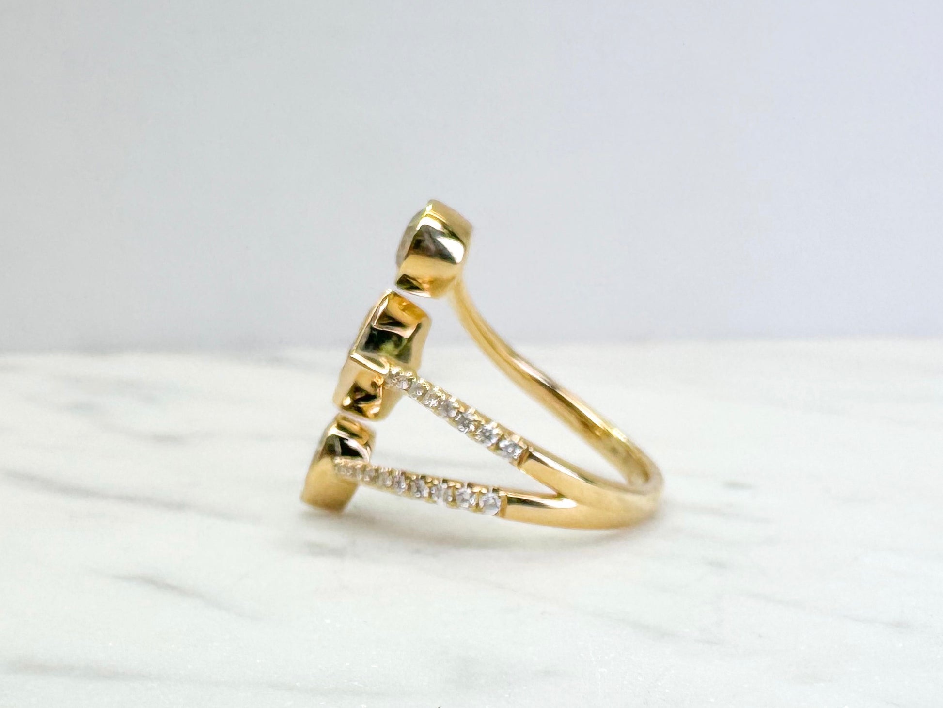 14k custom three stone diamond ring