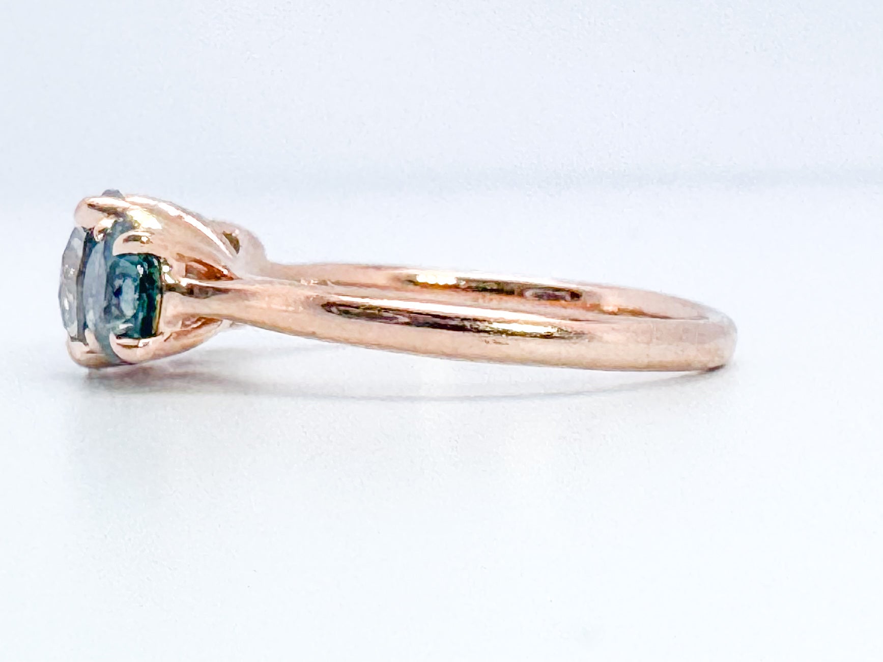14k, rose gold, 1.02 carat Natural grey diamond set with 1.00 carat total weight natural montana sapphires.