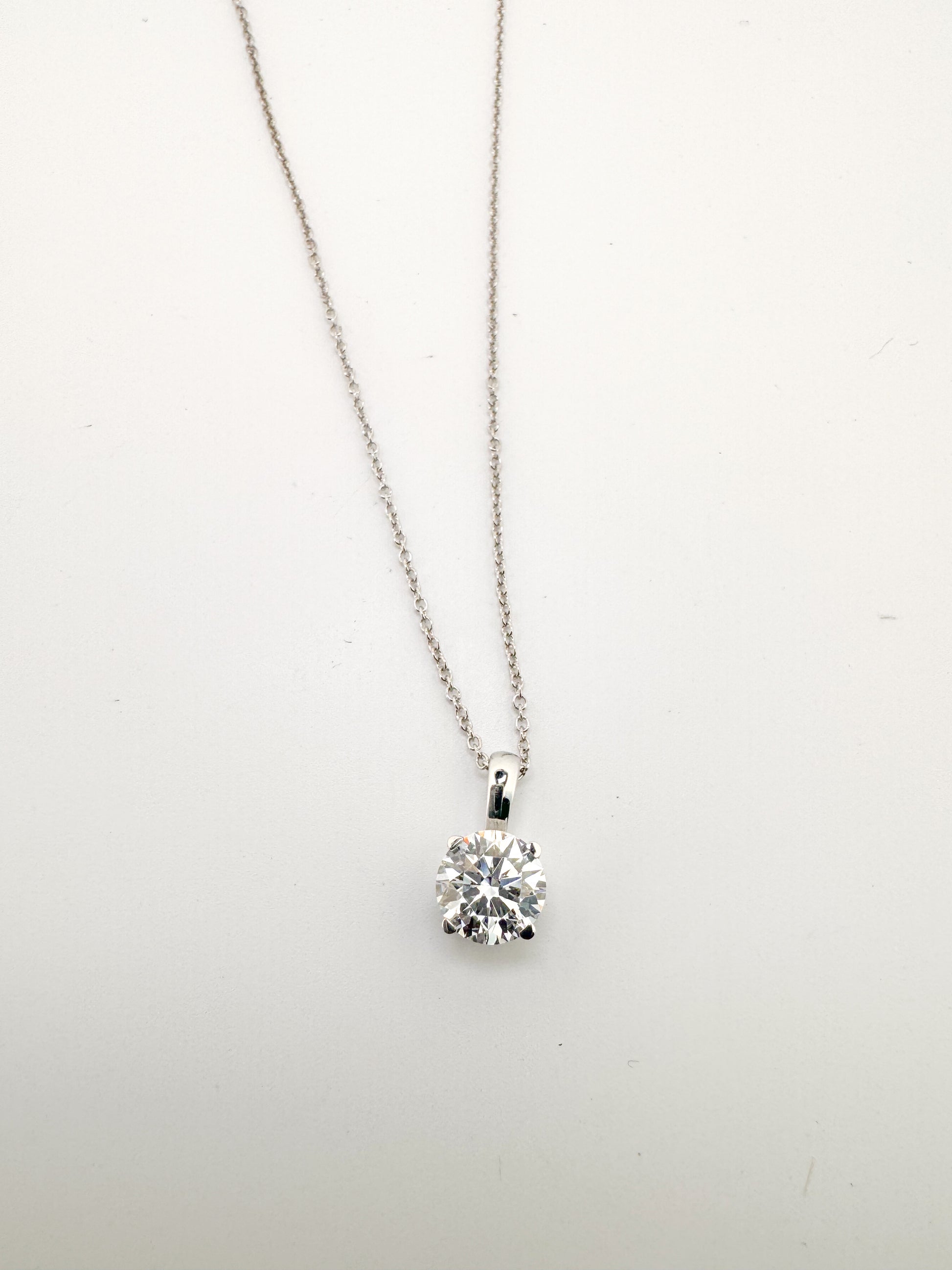 14K, white gold 1.00 carat total weight, lab grown solitaire pendant.