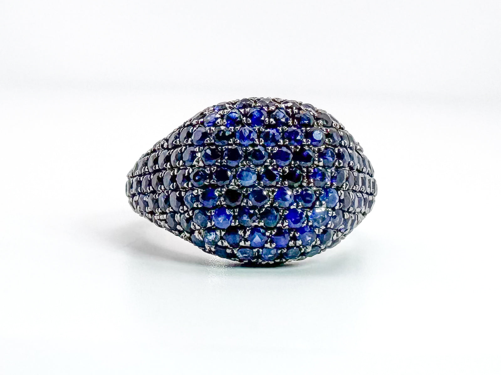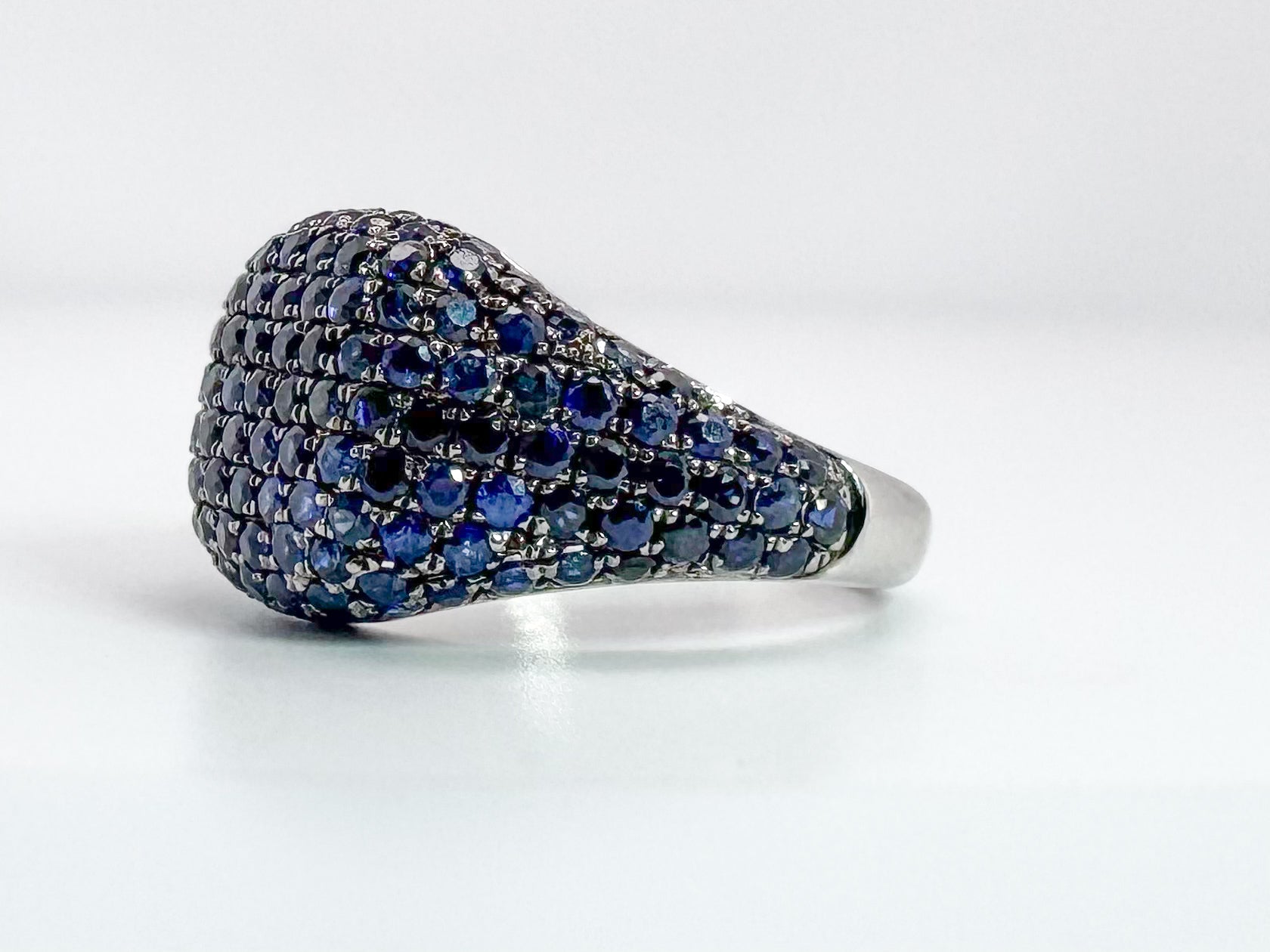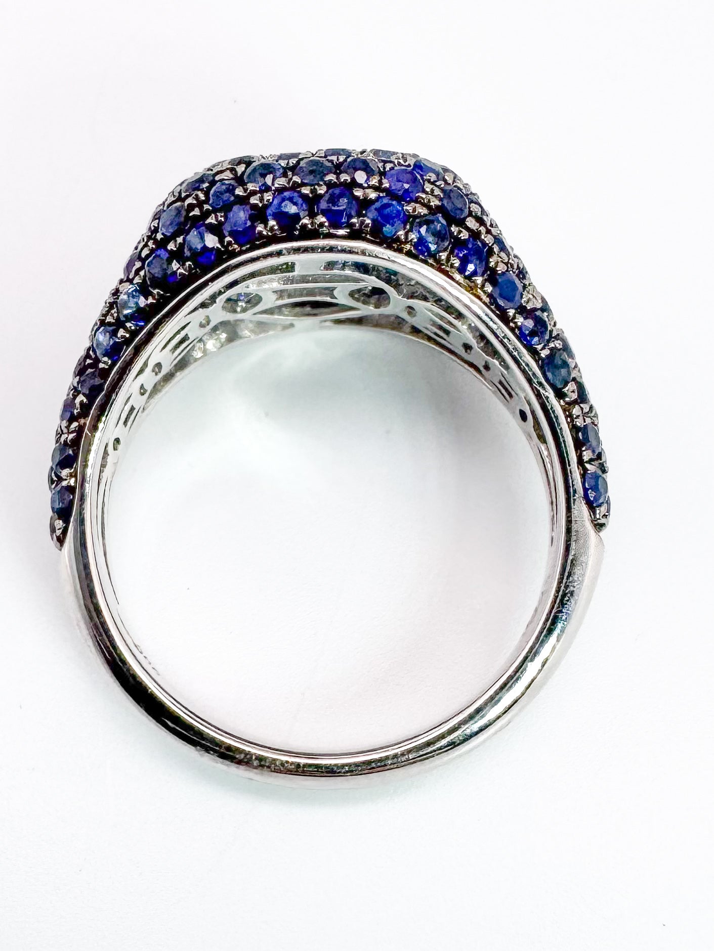 14K, White gold, 1.74 carat total weight natural sapphire pinky ring.
