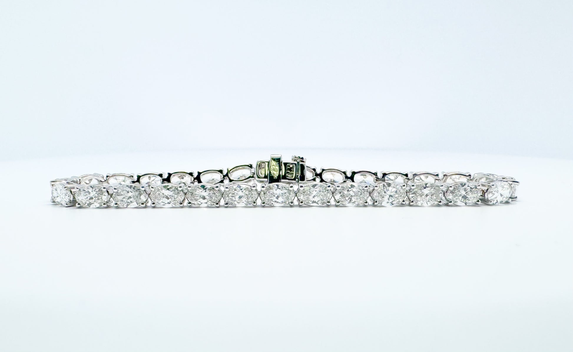 14k white gold 9.01 carat lab grown side ways oval diamond tennis bracelet.