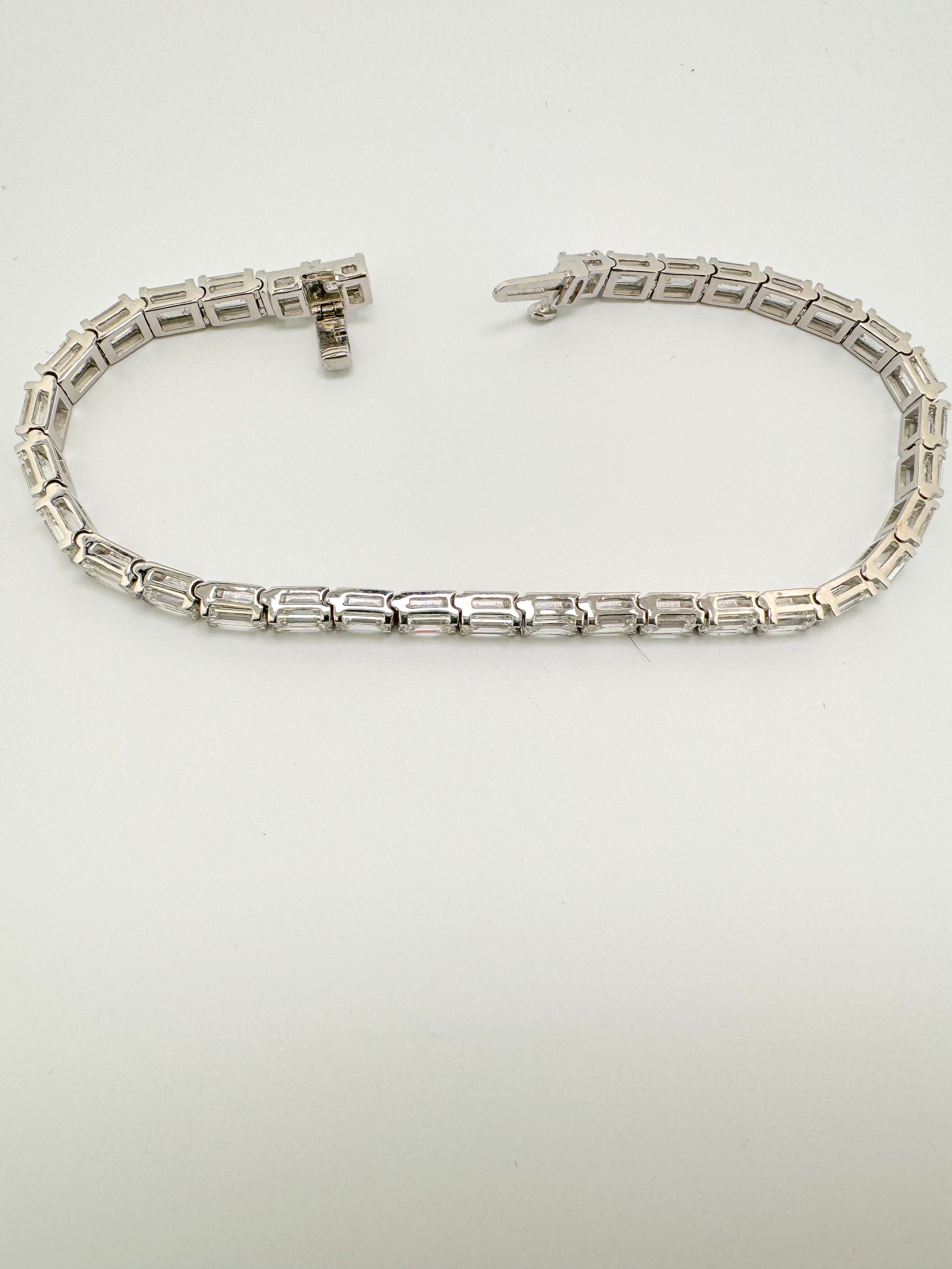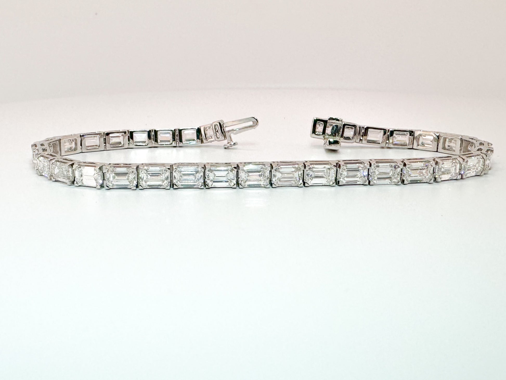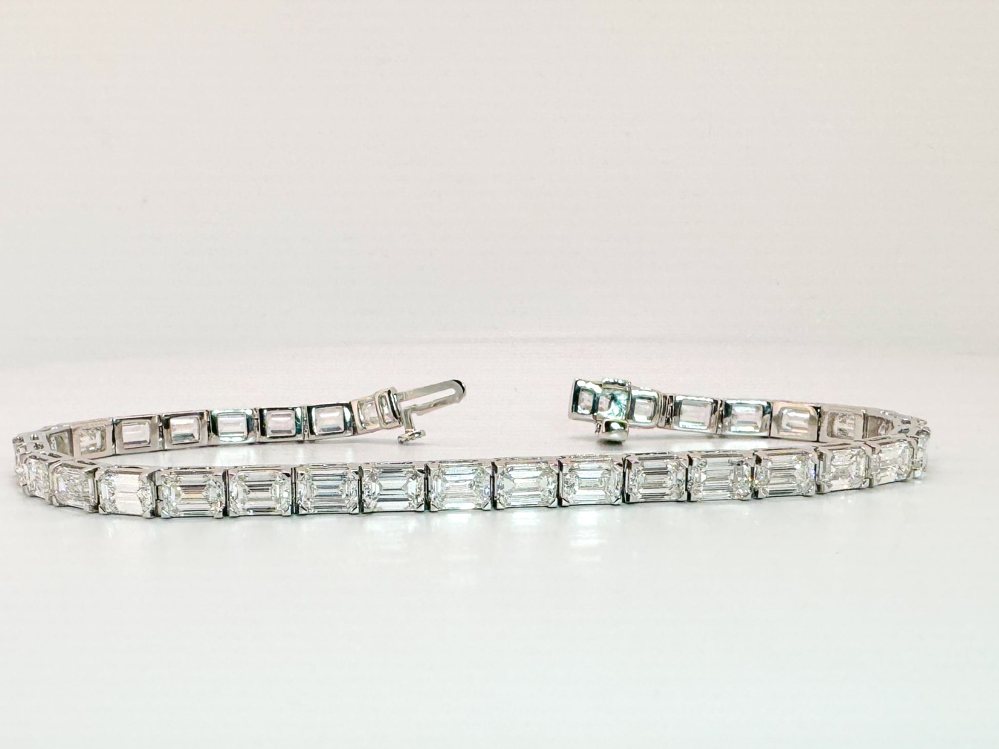 14k, white gold, 11.75 carat total weight, emerald cut, lab grown diamond tennis bracelet. VS1 E-F