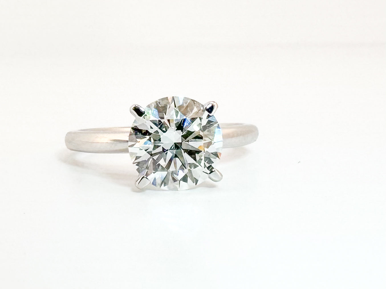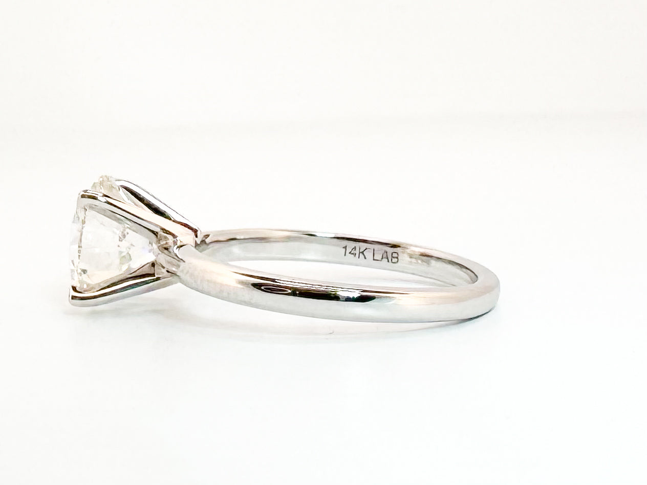 14K, white gold, 2.03 lab grown round brilliant, VS1 G solitaire engagement ring