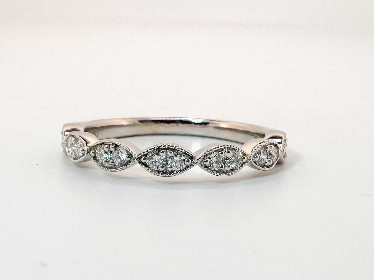 Classic, milgrain, diamond band. Add this to your stack, or up against your engagement ring.