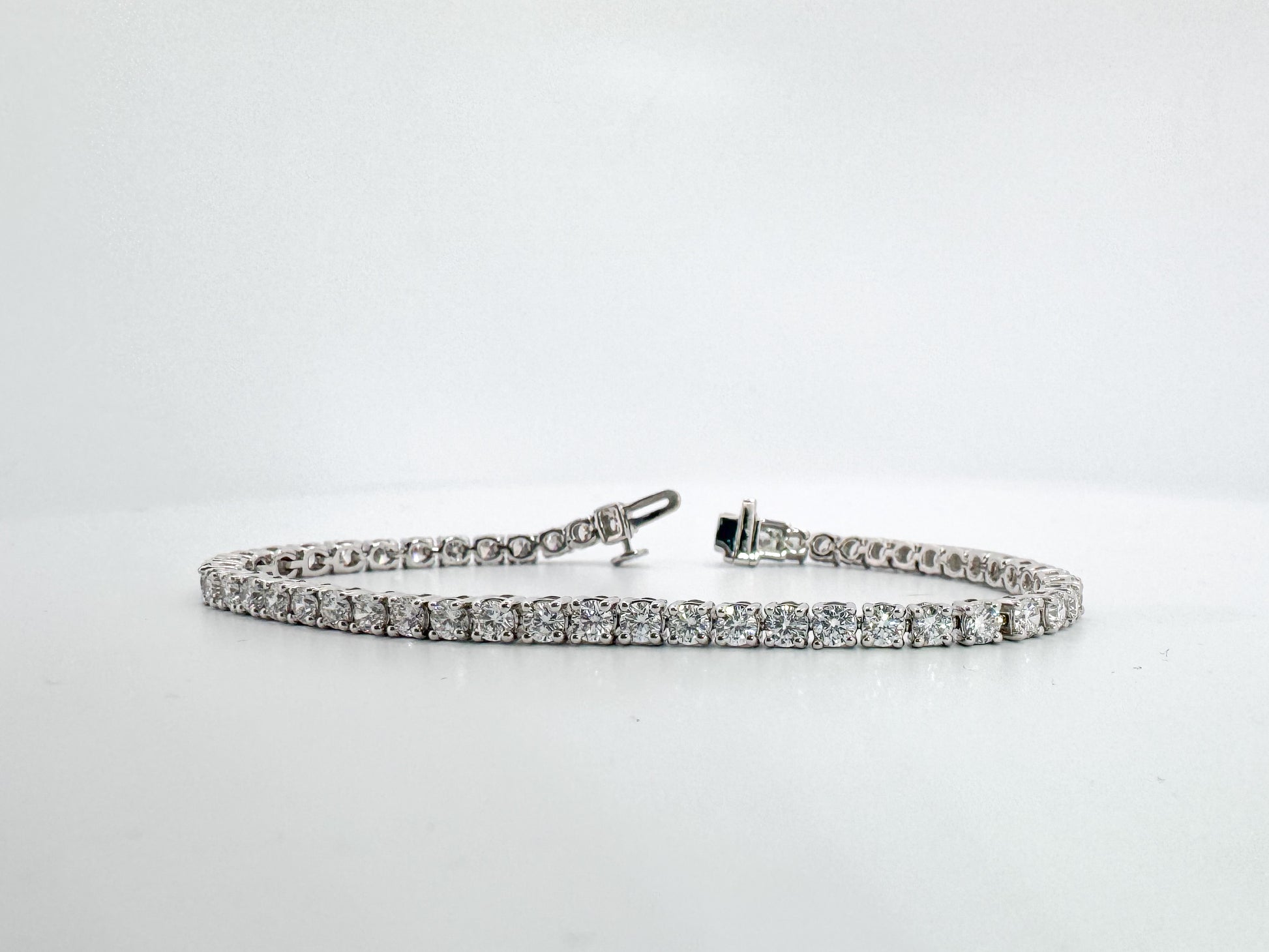 14k, White gold, 5.00 carat, lab diamond tennis bracelet. VS1/VS2 E-F