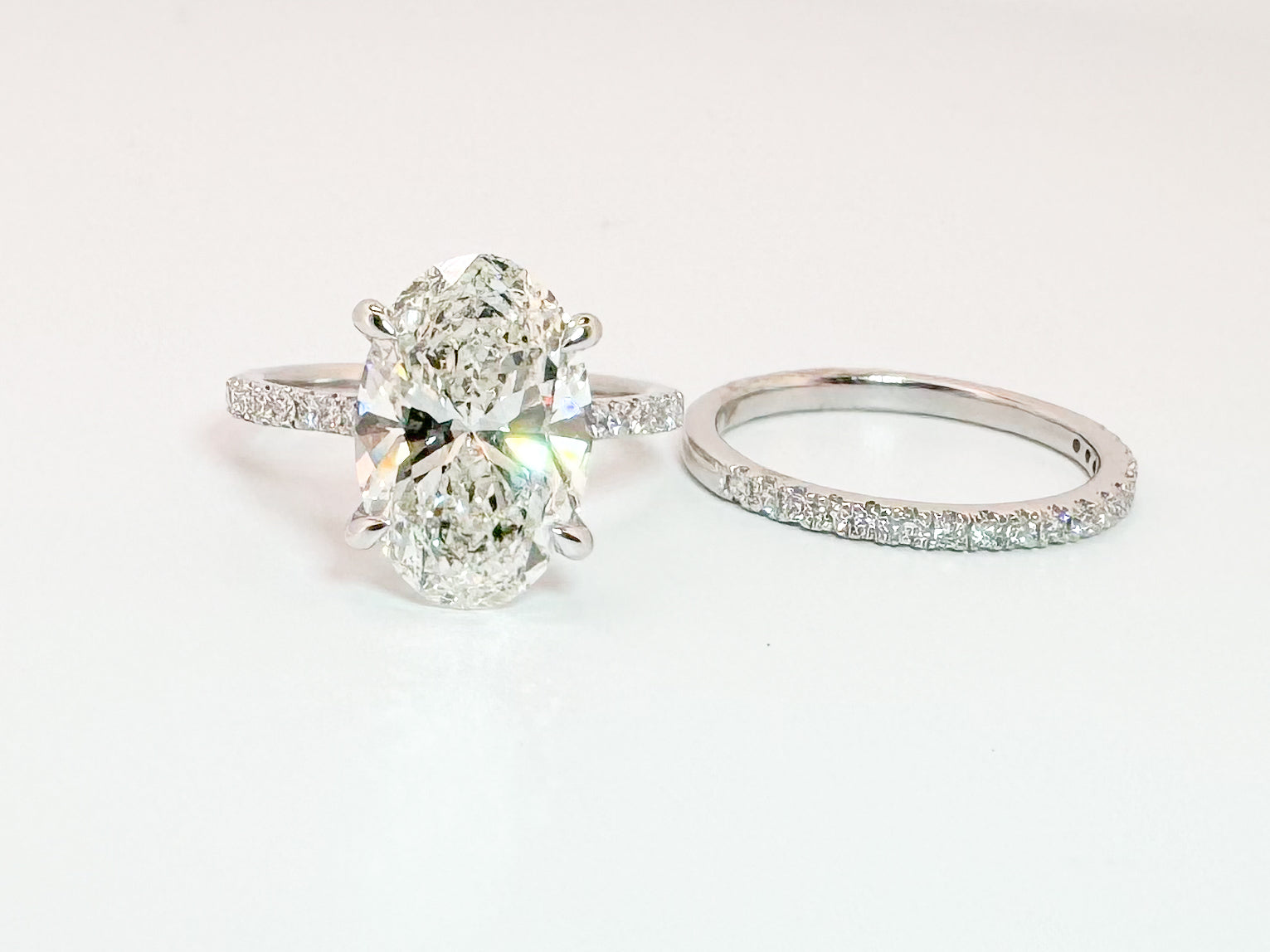 14k, white gold 5.55 carat lab grown oval diamond wedding set. VS2 G IGI certified