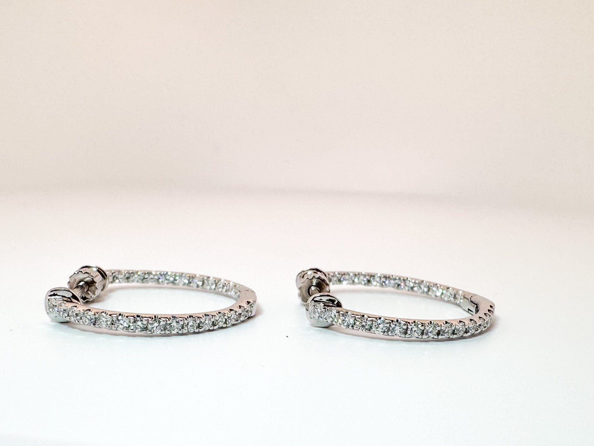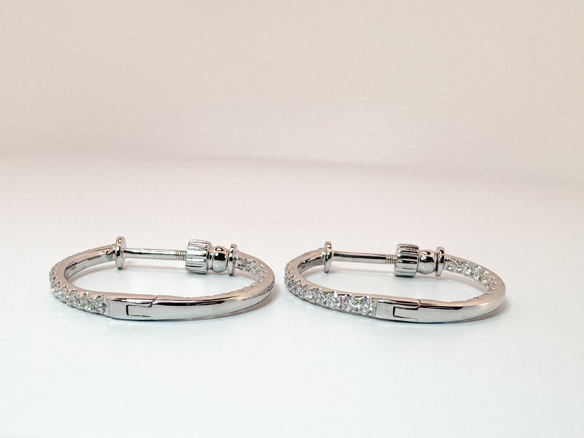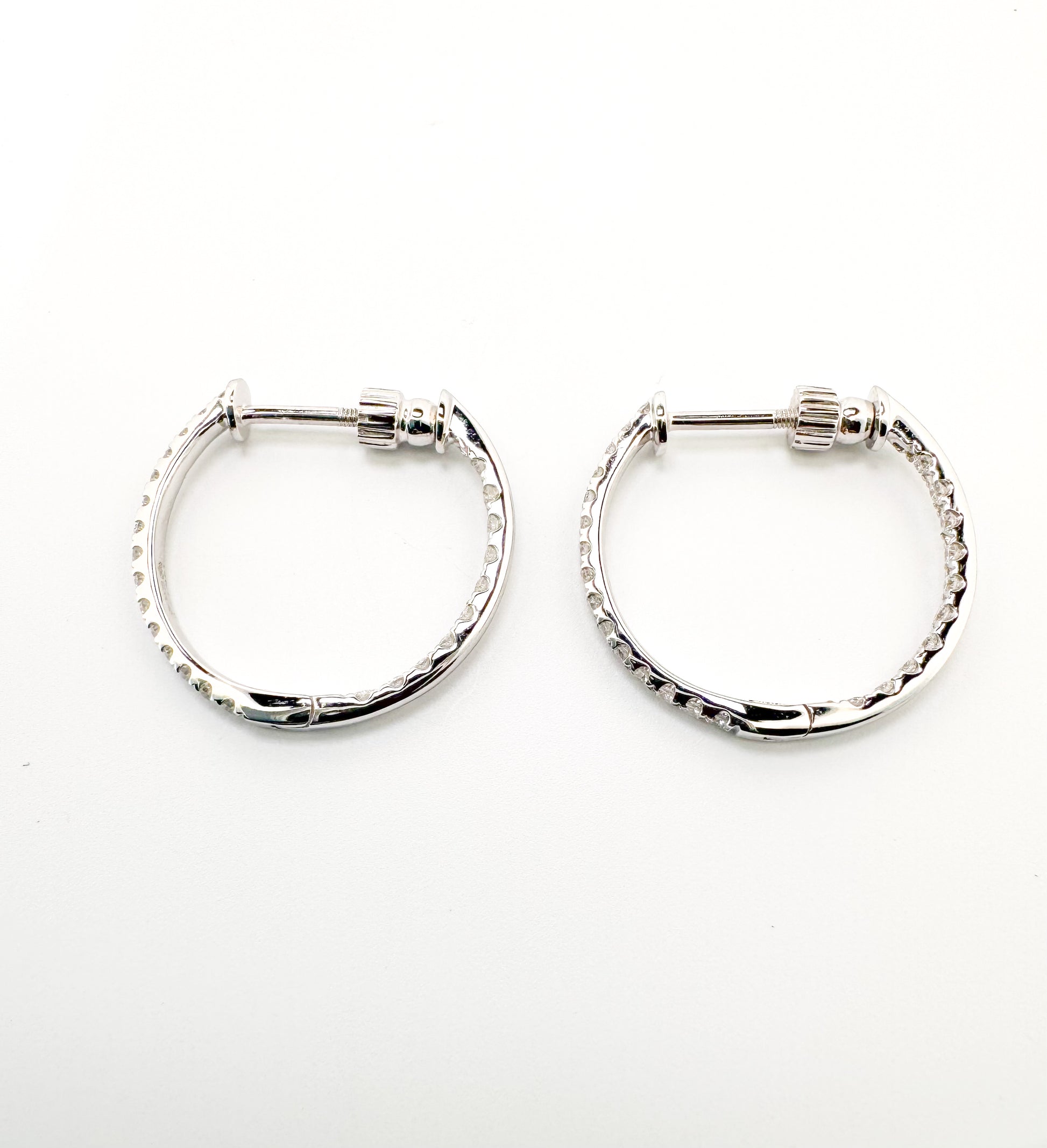 14k, white gold, .60 diamond total weight, inside out, hoop earring with screw backs.