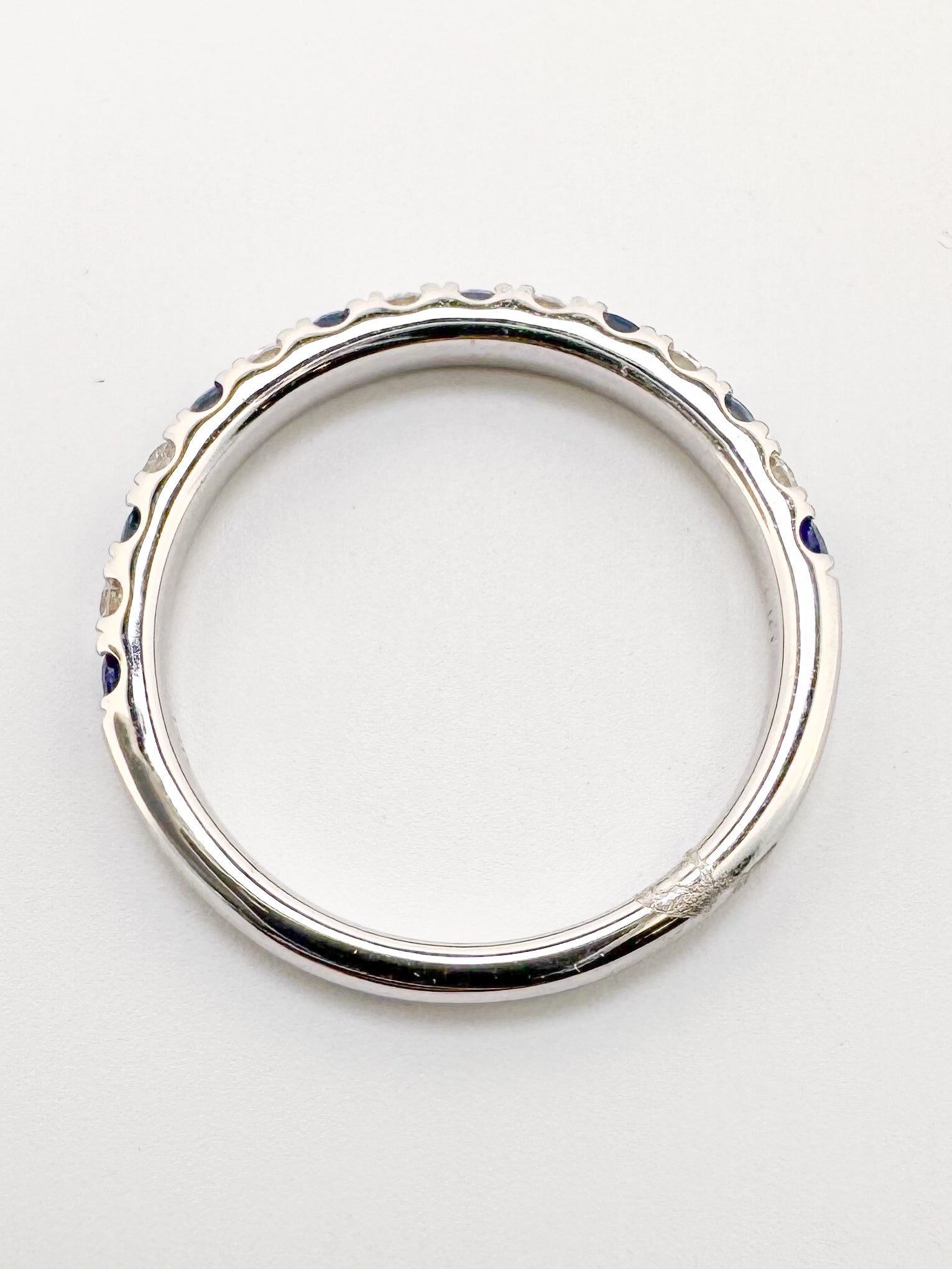 14k, White gold , sapphire and diamond band. .24 ctw diamond/ .48 ctw sapphire