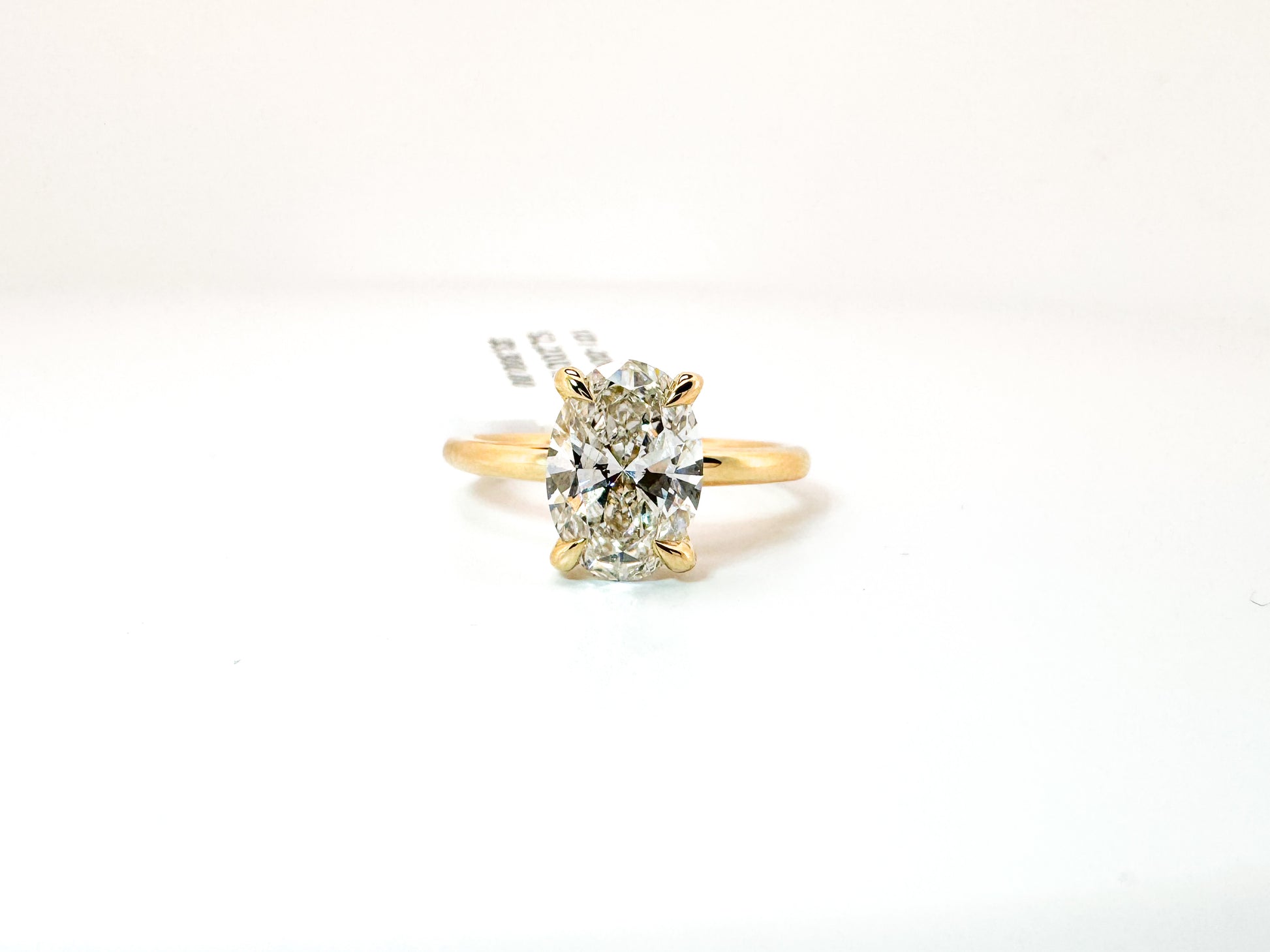 14k, yellow gold 1.89 carat, Lab grown oval set with .06 side dia