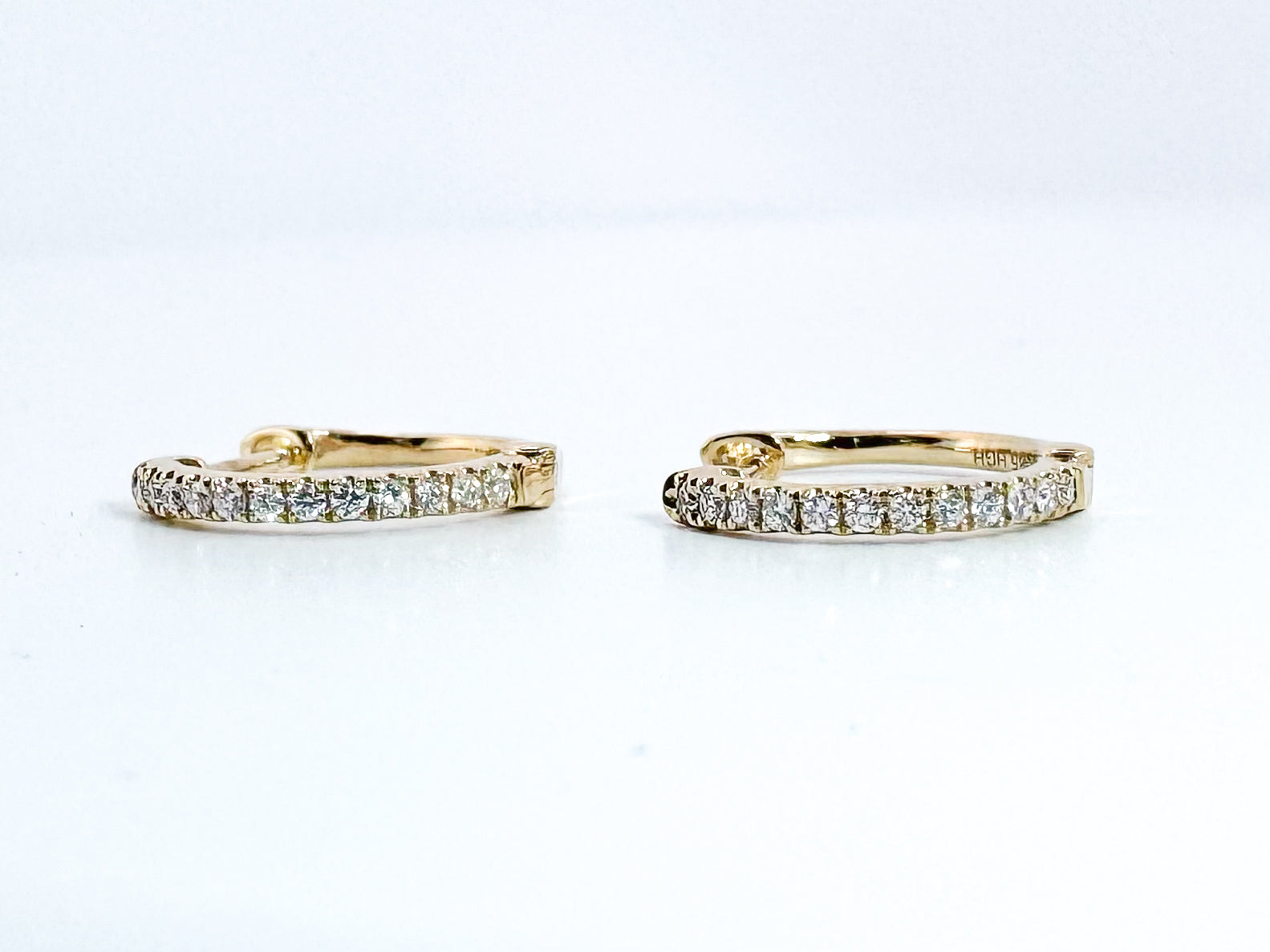 14k, Yellow gold, .15 diamond total weight, huggie diamond earrings.
