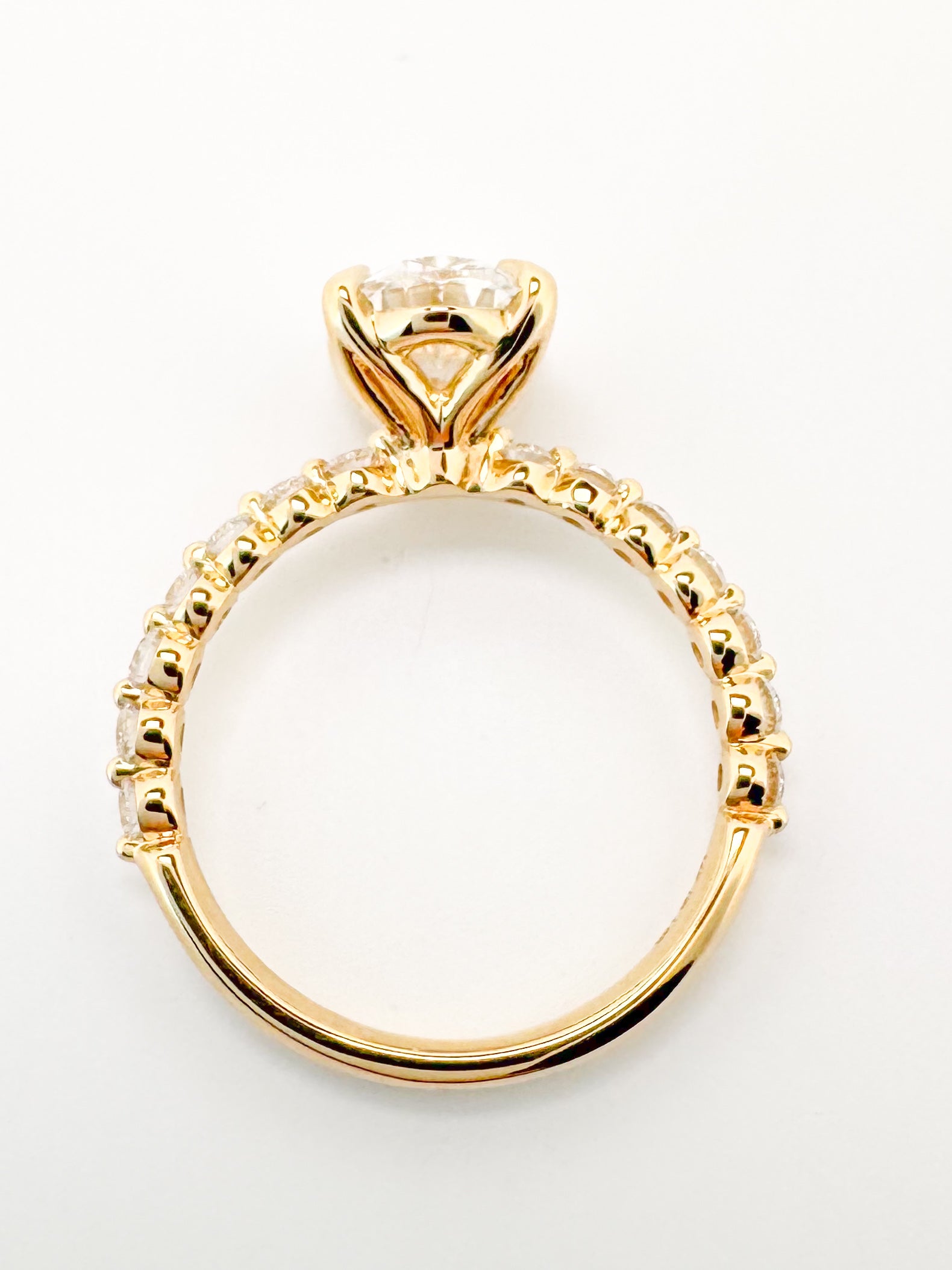 14K, Yellow gold, 2.04 carat, Lab grown oval diamond, set with .35 carats of side diamonds. IGI Certified