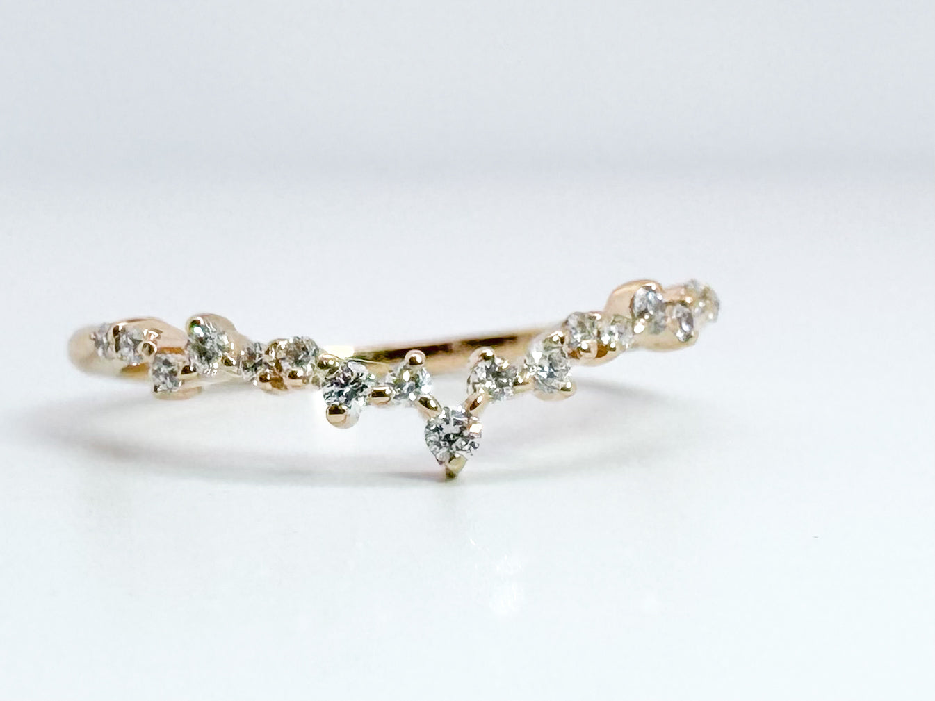 14K, Yellow gold, .22 diamond total weight, contour band.