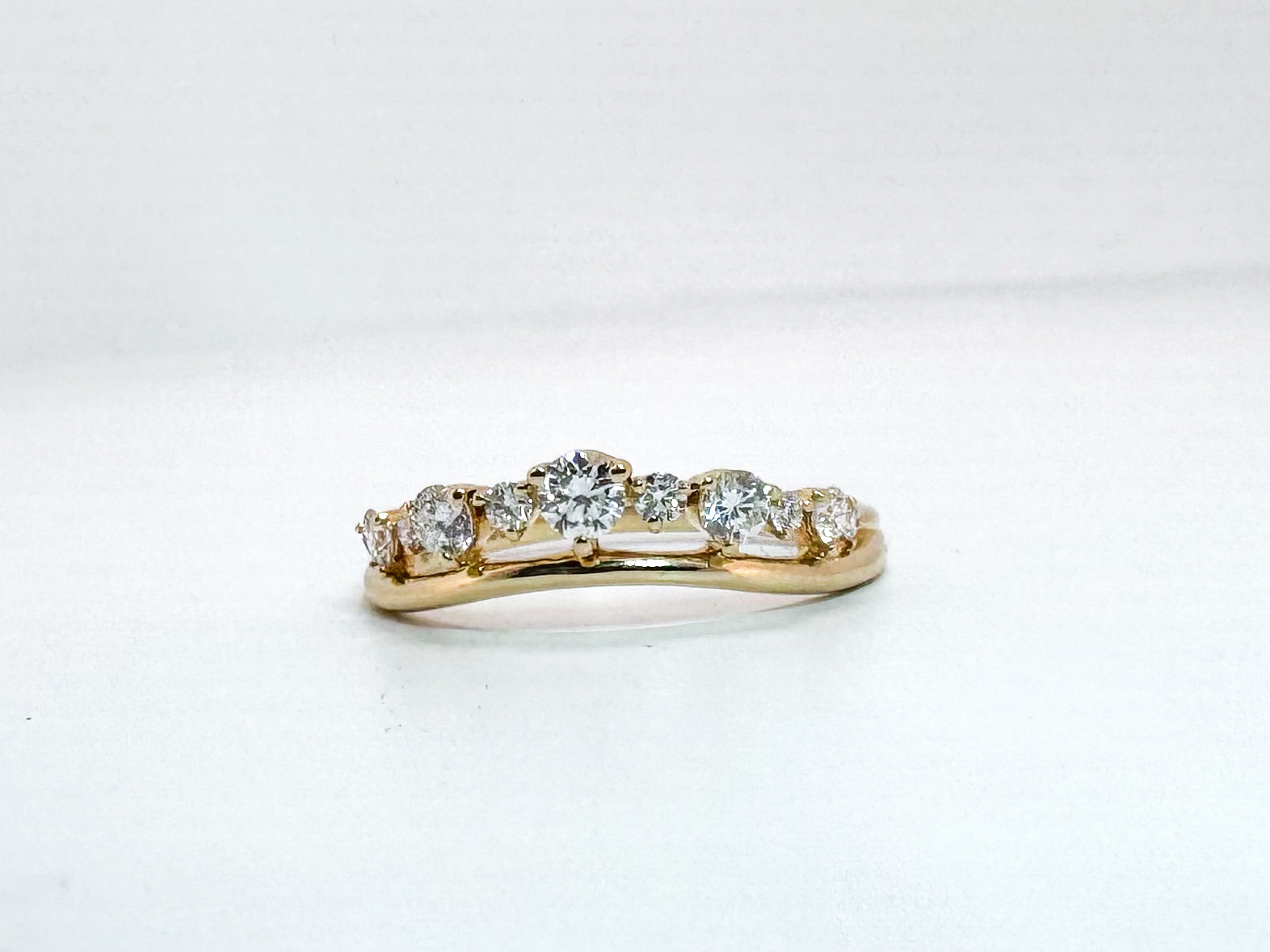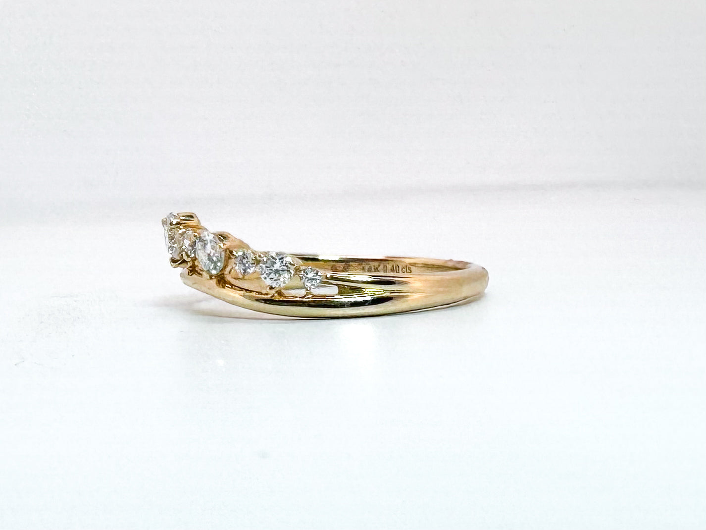 14k, yellow gold.40 diamond total weight, curved wedding band.